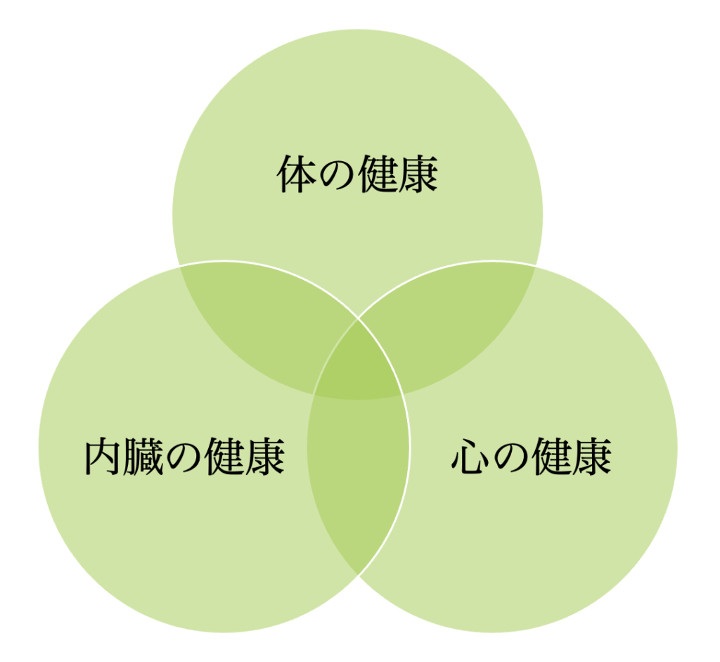 3つの健康とは、身体の健康・内臓(病気)の健康・心の健康の3つを意味します。